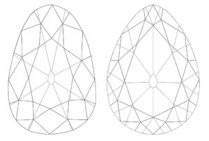 Prenons l’exemple du Vert de Dresde célèbre diamant vert (à gauche , et mon interprétation (à droite)