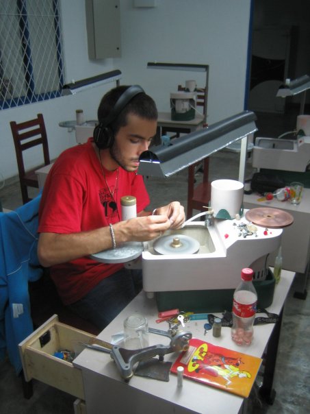 Lorsque je travaillais au Sri Lanka (2008-2009), en tant que professeur de gemmologie, l’après midi mes élèves étaient en cours de taille, je décidai très rapidement de les rejoindre pour profiter des cours de Ravindra Perreira, prof de taille et tailleur spécialiste ès Padmaraga (Padparadsha). Il m’apprit énormément de choses et commença a me donner l’envie de me perfectionner.